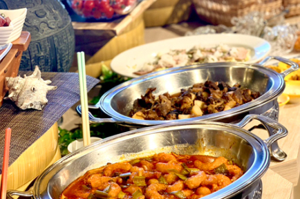 『アヒージョ』、『カレー』、各種サラダにデザートまでお楽しみ下さい。
