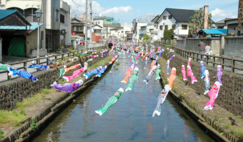 「蔵の街とちぎ」を流れる巴波川に、約1000匹の鯉のぼりが約600mにわたって吊るされるイベント。