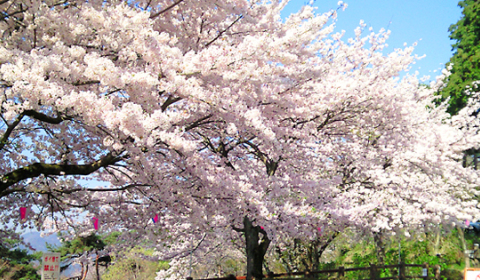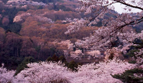 桜の時期に4000本のソメイヨシノが満開して山全体を彩ります。